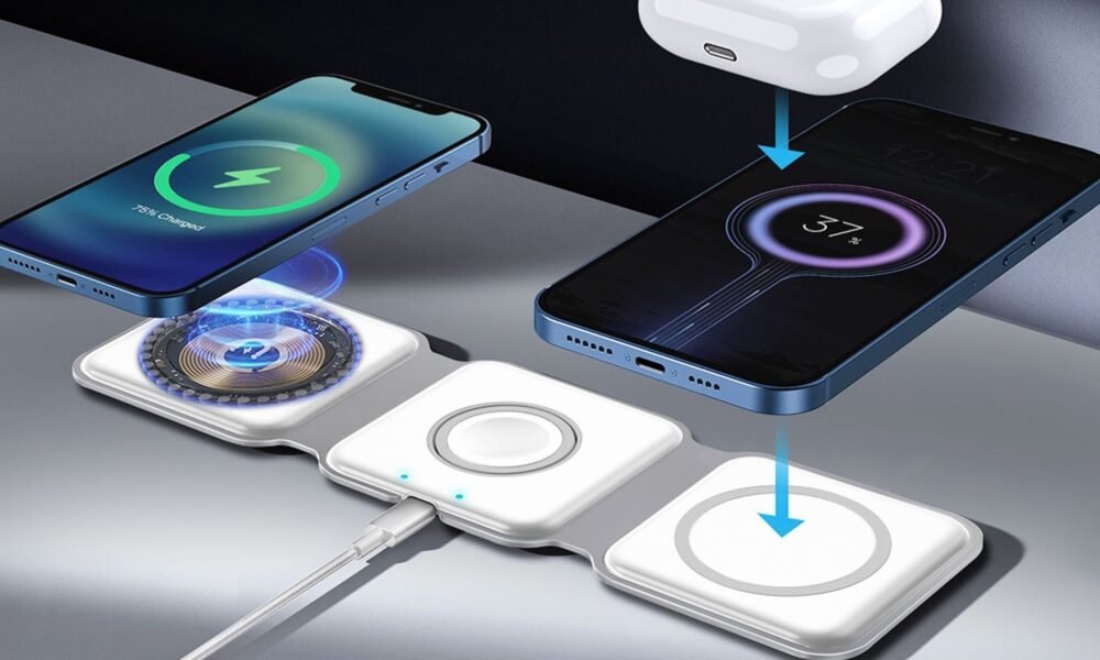 It folds up and can charge three devices at once. Charging It folds up and can charge three devices at once.