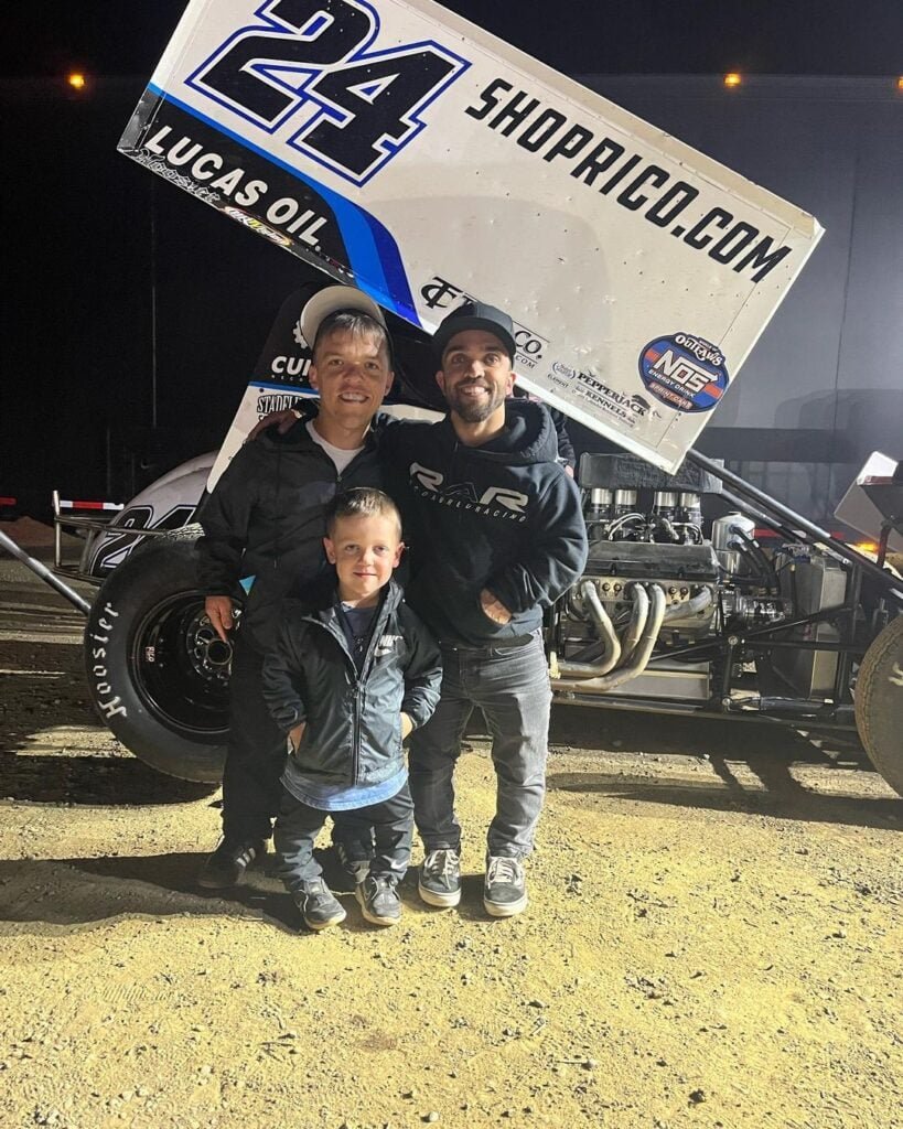 Precious 6-year-old Jackson Roloff poses with dad Zach Roloff and professional dirt track and sprint car driver Rico Abreu in September 2023. (Instagram)