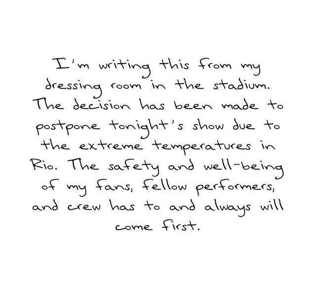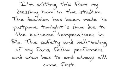 Taylor Swift has postponed her second Eras Tour concert in Rio de Janeiro. “I’m writing this from my dressing room in the stadium,” Swift, 33, wrote...